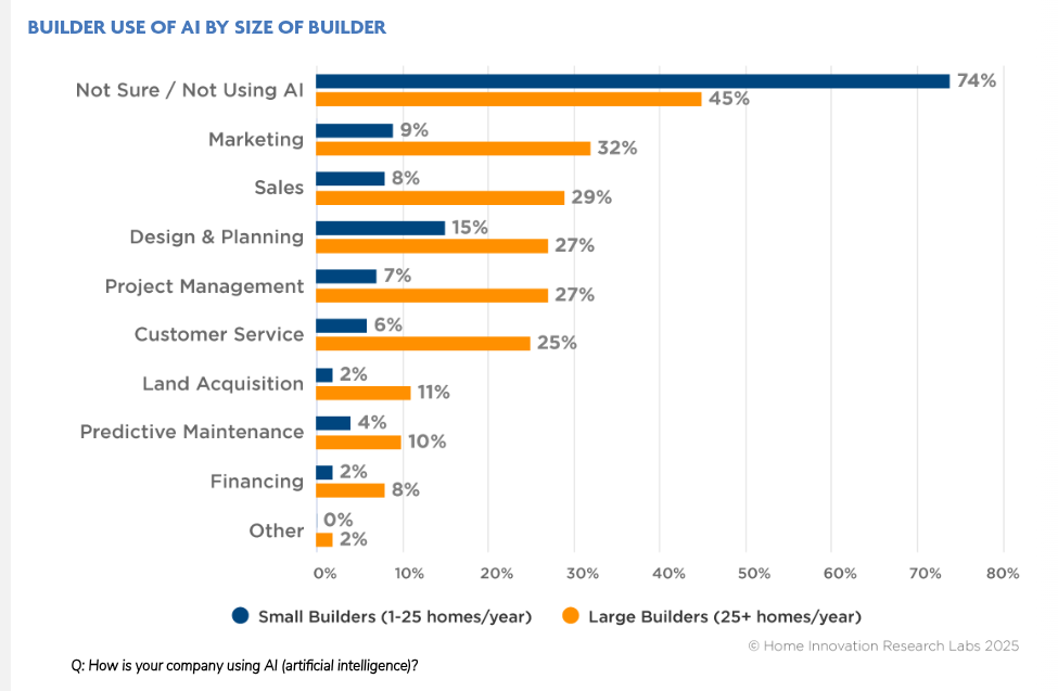 Larger builders report significantly higher AI adoption than small and mid-sized builders.